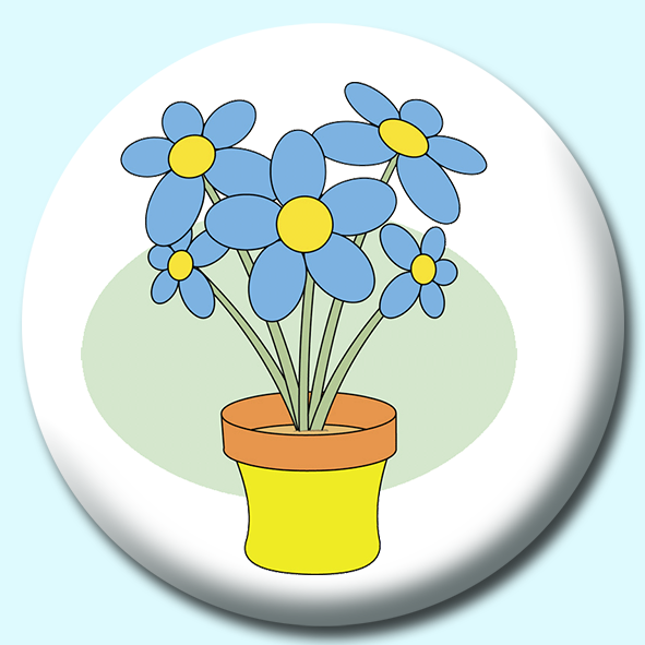 75mm Blue Flowers In Planter Button Badge